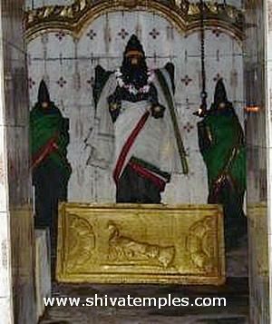 The ancient Tamil saint poet Arunagirinathar, has exalted and glorified the deity Muruga enshrined in this temple. The sannidi, dedicated to Lord Muruga is situated in the northern prakaram, or circumambulatory passageway surrounding the temple's central shrine. Muruga, is depicted in his iconic form with a single face and four divine arms, standing in a powerful yet graceful posture alongside his two consorts, Valli and Deivanai. The idol faces the eastern direction. Notably, the utsava murti, or festival idol, that is taken out in ceremonial processions, is portrayed bearing a bow and arrow, emblematic of Muruga's warrior prowess and his ability to defeat evil and ignorance with the weapons of knowledge and devotion. Arunagirinathar's Tirupugazh contains one song specifically extolling the glories and attributes of this Muruga.