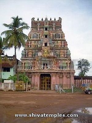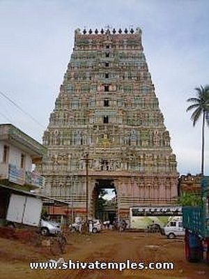 This shiva temple in Tirukanaper spans a vast area of 4 acres. There are two east-facing gopurams, a 9-tiered one measuring 157 feet built by the Maruthu Pandiyas and the other smaller 5-tiered one built by the Pandya King Sundara Pandiyan. There are two prakaram and three seperate sannidhis dedicated to three deities Within the temple complex. The Presiding deity is SwarnaKaleeshwara on whom the thevara pathikam is sung. There are two more sannidhis on either side of the presiding deity; Someshwara to the right and Sundareshar to the left. All the temple properties are registered under the name of the presiding deity SwarnaKaleeshwara. During festivals, the "Urchava" idol of Someshwara is brought out for processions but any kind of nivedhanam or offering is given to Sundareshar. All the three sannidhis face east including the sannidhi of the female deity Suvrnavalli which is located to the left of Sundareswarar Sannidhi. The other two female deities are in their respective south-facing sannidhis.