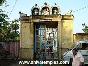கோவில் அமைப்பு: இது ஒரு கிழக்கு நோக்கிய கோவில். முதலில் நம்மை வரவேற்பது மதிற்சுவருடன் உள்ள ஒரு நுழைவாயில். நுழைவாயில் மேற்புறம் அமர்ந்த நிலையில் சிவன், பார்வதி, அவர்களுக்கு இருபுறமும் நின்ற நிலையில் விநாயகரும், முருகரும் சுதை வடிவில் காட்சி தருகின்றனர். அதைக் கடந்து உள்ளே சென்றால் 3 நிலை இராஜ கோபுரம் உள்ளது. நுழைவாயிலுக்கும் 3 நிலை இராஜ கோபுரத்திற்கும் இடையில் நந்தி மண்டபம் உள்ளது. உள்ளே கருவறையில் இறைவன் லிங்க உருவில் கிழக்கு நோக்கி அருட்காட்சி தருகிறார். கோஷ்ட மூர்த்தங்களாக தட்சிணாமூர்த்தி, லிங்கோத்பவர், துர்க்கை ஆகியோர் காட்சி தருகின்றனர். அம்பாள் கோவில் தெற்கு நோக்கியுள்ளது. ஒரே கல்லில் புடைப்புச் சிற்பமாக உள்ள சப்தமாதர்கள் சிற்பங்கள் பார்த்து ரசிக்கத் தக்கது. நவக்கிரக சந்நிதியும் உள்ளது.