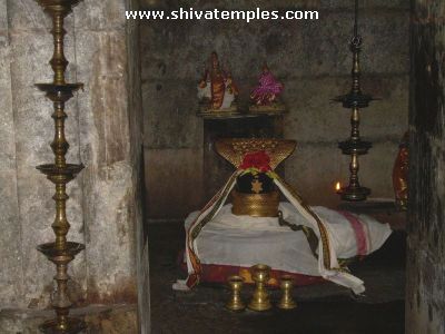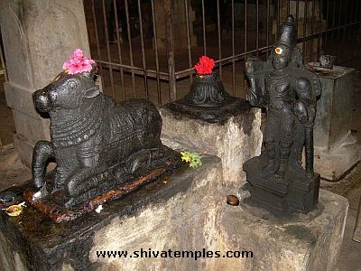 Sundara Moorthy Nayanar wed Sangili Naachiyar beneath a bakula tree in Tiruvotriyur, with Lord Shiva as a witness, pledging to never forsake her. However, he ultimately broke this vow and departed for Tiruvarur, resulting in the loss of his sight. After leaving Tirumullaivayil, Sundarar journeyed to this location, where he earnestly composed a pathikam, seeking divine assistance to restore his vision. In response, Lord Shiva granted him a club, referred to as 'oondru-koal' in Tamil, intended as a support. Despite this gift, Sundarar remained disheartened as his sight did not improve, leading him to question Shiva's presence in the temple, to which Shiva confirmed His existence. In a moment of frustration, Sundarar cast aside the club, accidentally damaging the horn of the sacred bull, Nandi, which is now depicted with a broken horn as a lasting reminder of the event. Ultimately, Sundarar regained his sight at Ekambareswarar temple, Tirukachchi Ekambam (Kancheepuram).