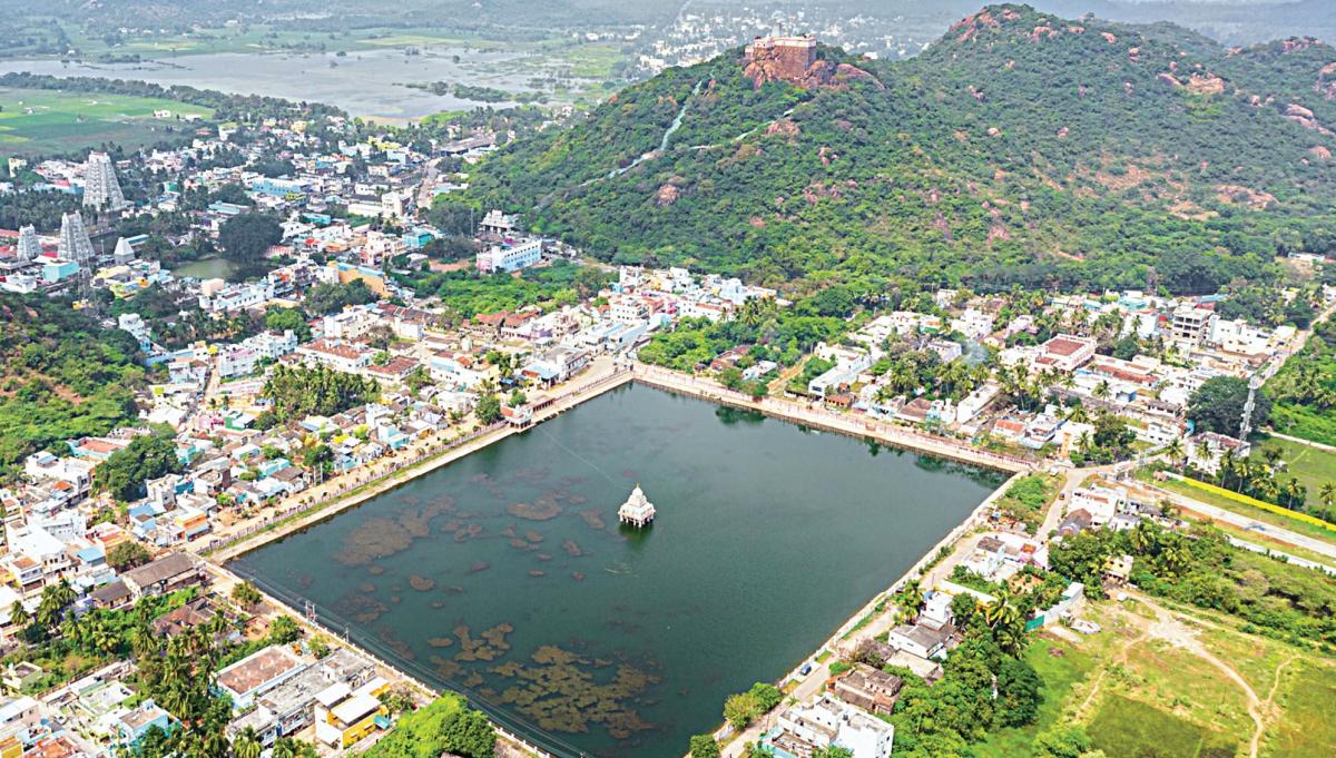 At the end of the road along the eastern entrance lies the famous pond known as 'Shangu Theertham'. This sacred water body is notable for a unique occurrence: every 12 years, a new conch shell rises from its depths. These conches are meticulously gathered and housed within the temple. According to legend, when Markandeyar was without a vessel to conduct rituals for the deity, God appeared to him and gifted him a conch. Since that time, it is believed that a new conch is born in the pond every 12 years. It is widely held that bathing in the pond at dawn and practicing 'giri valam'—the circumambulation of the hill—can provide comfort and healing from various ailments.