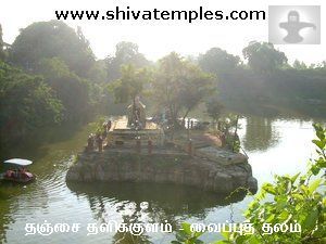 | எப்படிப் போவது | தஞ்சாவூர் பெரிய கோவிலுக்கு அருகிலுள்ள சிவகங்கை பூங்காவின் உள்ளே ஒரு குளம் உள்ளது. இந்த குளத்தின் நடுவிலுள்ள பெரிய மேட்டின் மீது இந்த வைப்புத் தலக் கோவில் உள்ளது. குளத்தின் மையத்திலுள்ள இந்த இடத்திற்கு படகு மூலமோ அல்லது இழுவை இயத்திர ரயில் மூலமோ (winch) செல்லலாம். |